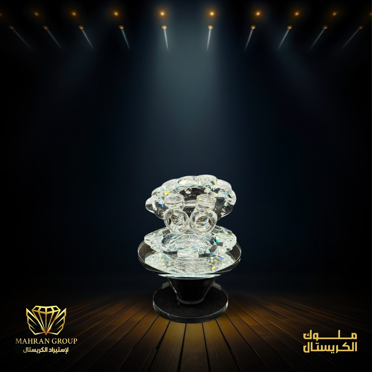 ودعة مصنوعة من الكريستال علي شكل دبلتين موضوعة علي قاعدة من الكريستال